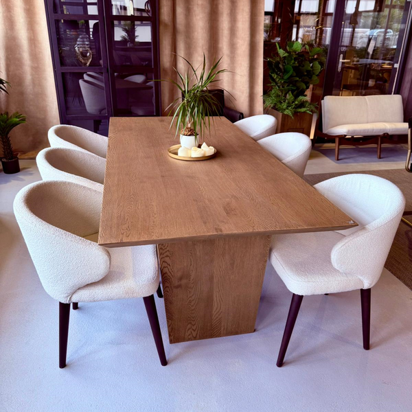 masa din lemn masiv si scaune din piele naturala